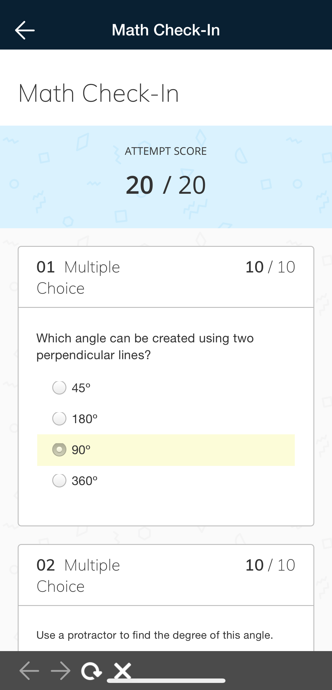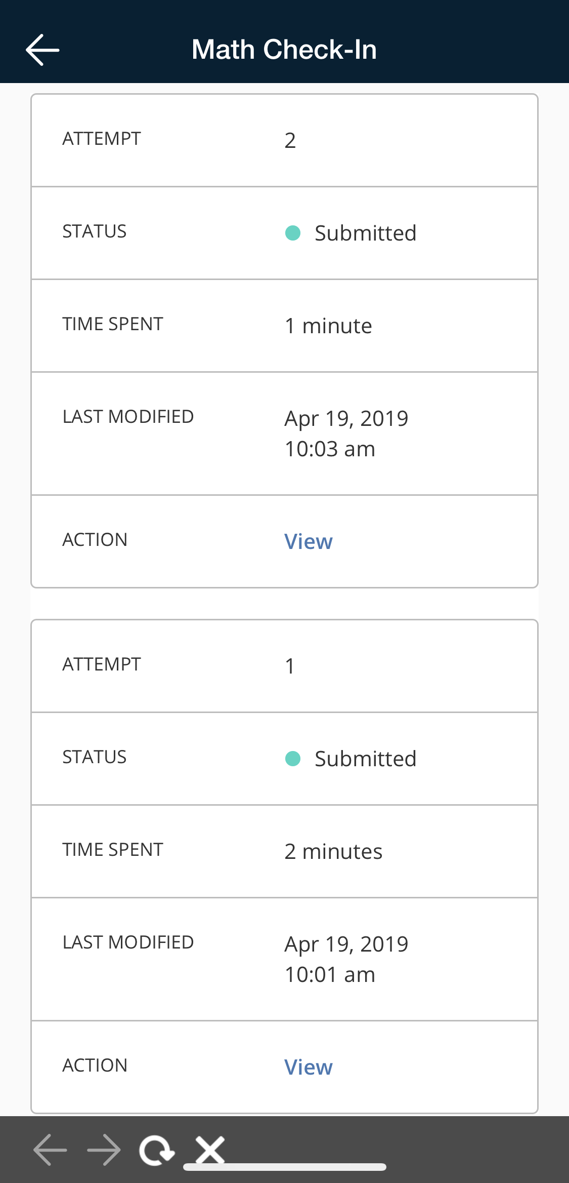 Left: The Assessment view after submitting multiple times on an iPhone X. Right: Scroll down to view other attempts.