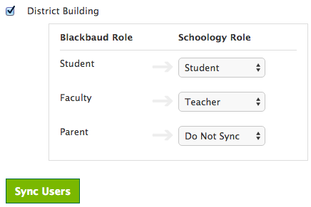 To sync users from Blackbaud to Schoology, you must select the role to which the account will be mapped.