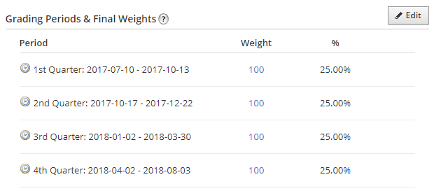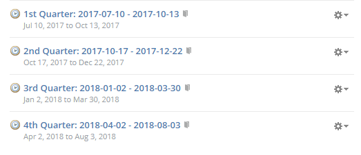 Each course section can be associated with one or more grading periods. Grading periods give each section a start and end date, which allows for auto-archiving of past courses, and preparation of future courses.