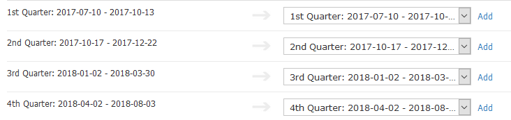 Then enter "17-18" into the CSV Value field for each of the four quarter periods.