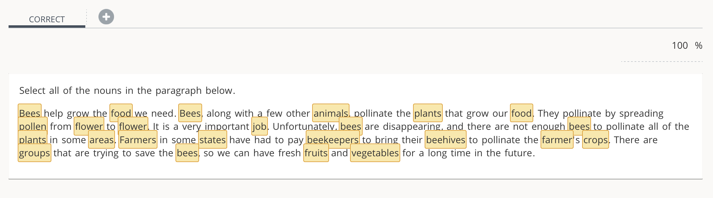 Use the Highlight Text question type to require students to click on and select certain words, sentences, or paragraphs of text.