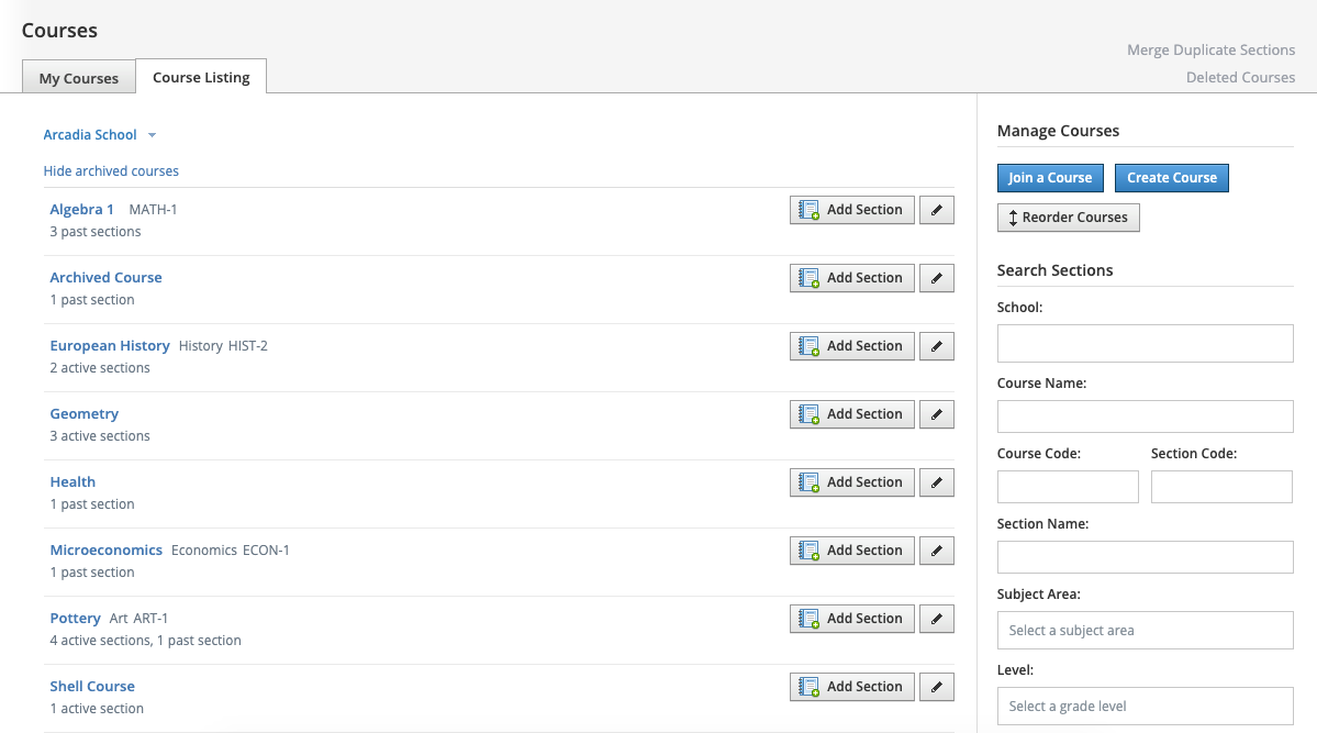How to use the Course Listing and Section Search (System Admins)