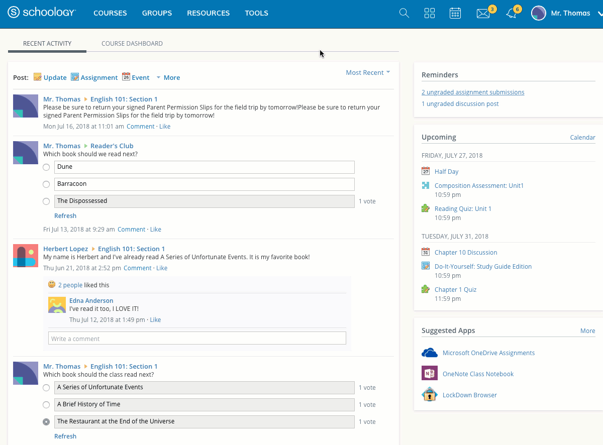 Specific sections in Schoology can be more easily located by using the Search Sections tool.