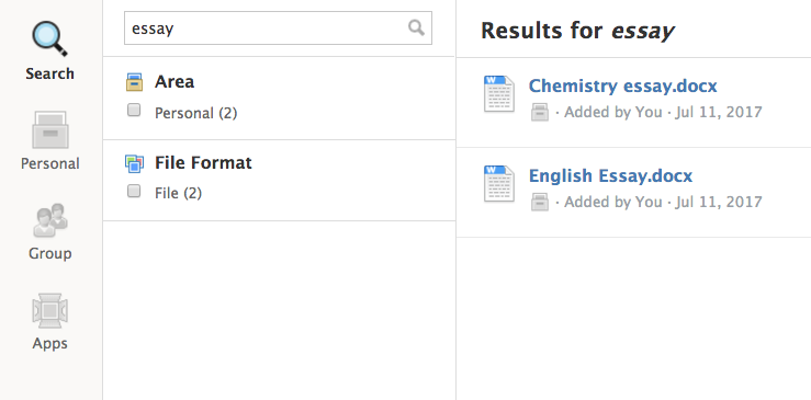 The Resource Search feature searches for keywords in yourPersonalandGroupResources.