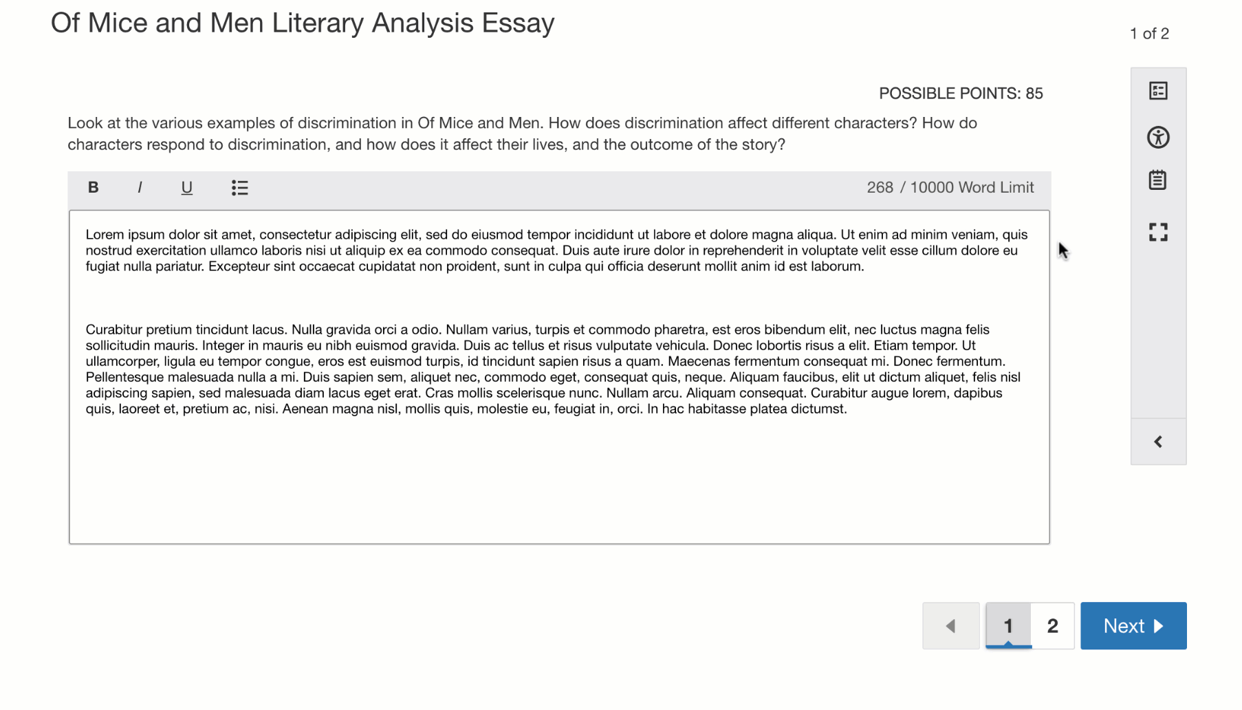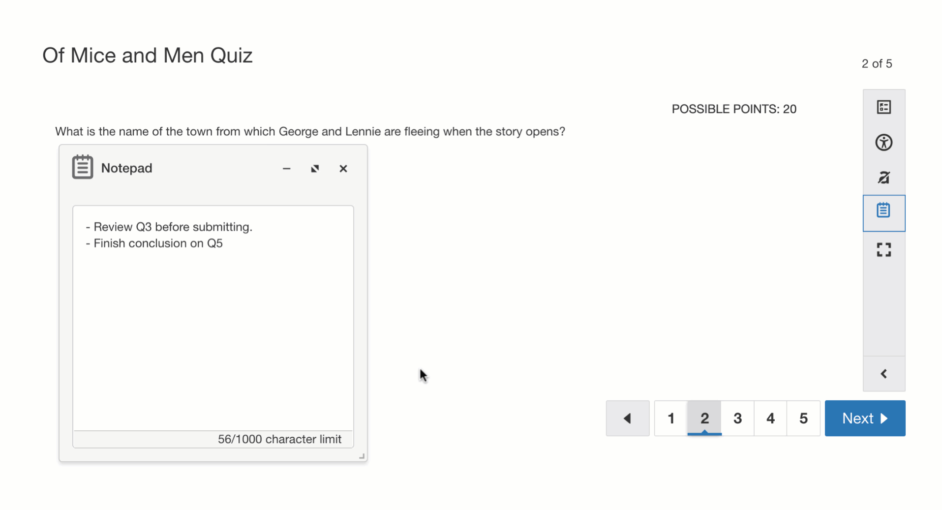 Once enabled, students can use the notepad tool while attempting the assessment: