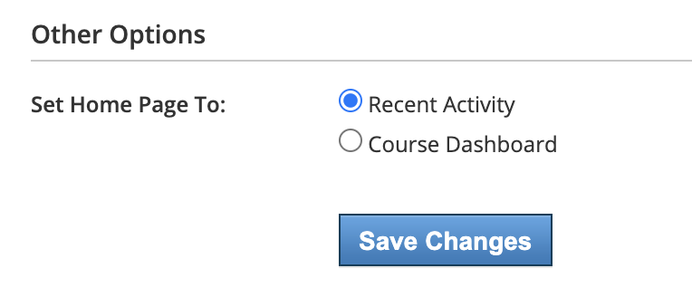 Set the default home page for your account to display Recent Activity or the Course Dashboard.