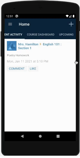 When you receive an assignment from a teacher in one of your classes, you can review and submit the assignment from the Schoology app on an Android device.