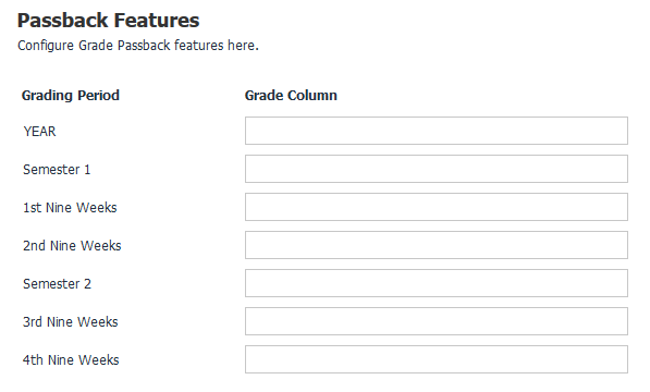 The Data Exchange Passback service offers users the option to be notified if an error or failure occurs with your grade passback service. You can enter one or more email addresses for individuals who should receive these notifications, separated by commas.