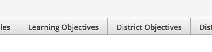 Podrá administrar los objetivos para los campus utilizando el desempeño del distrito en la pestaña Objetivos del distrito. Si posee objetivos personalizados a los que desea que sus otros campus también tengan acceso, puede crearlos y administrarlos en la pestaña Objetivos de aprendizaje. Las dos pestañas parecen similares, pero no están conectadas de ninguna forma.