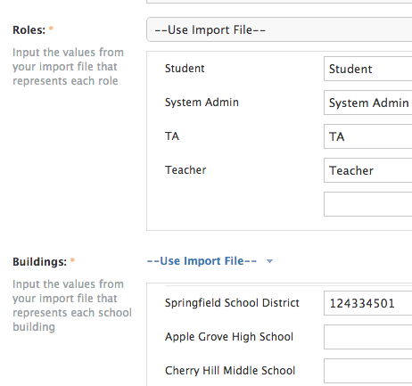Al importar usuarios, debe asignarlos en lotes a los roles y campus al agregar columnas de ID de campus e ID de rol a su archivo de importación.