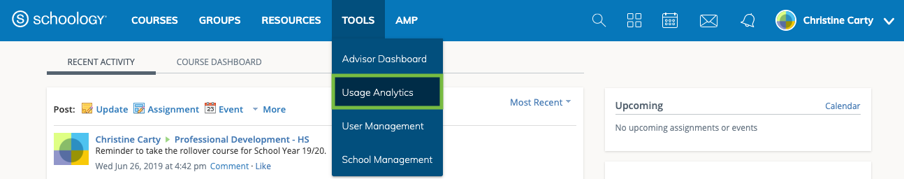 Haga clic en Herramientas en el encabezado en la parte superior de Schoology.