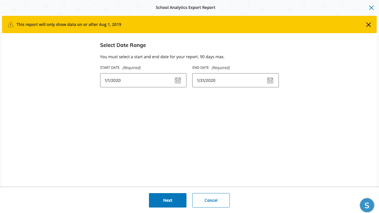 Con la habilitación del permiso Ver análisis estadístico del centro educativo, los administradores pueden exportar los datos registrados después del 1 de agosto de 2019 solo dentro de los campus que están asociados con sus cuentas.