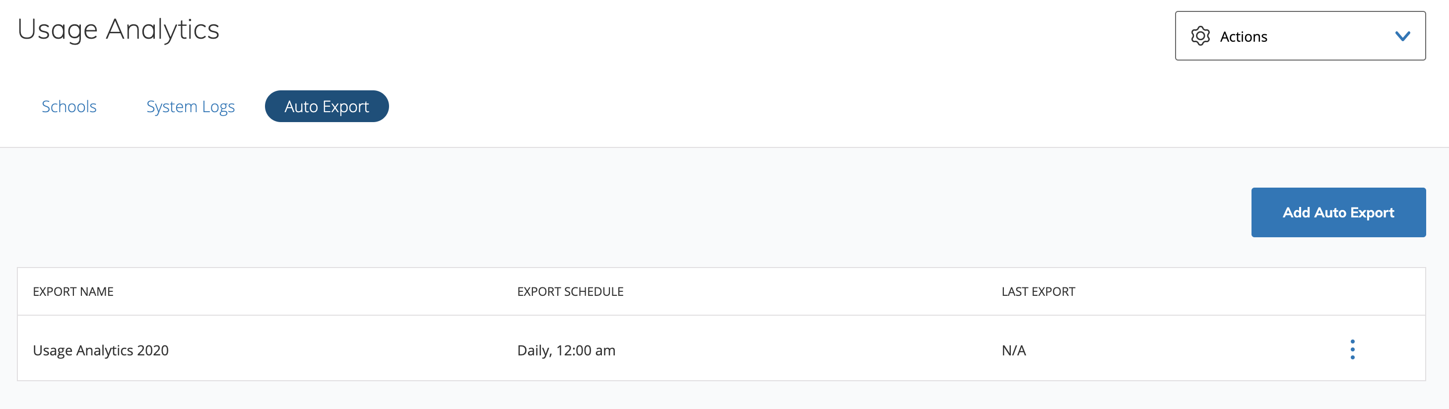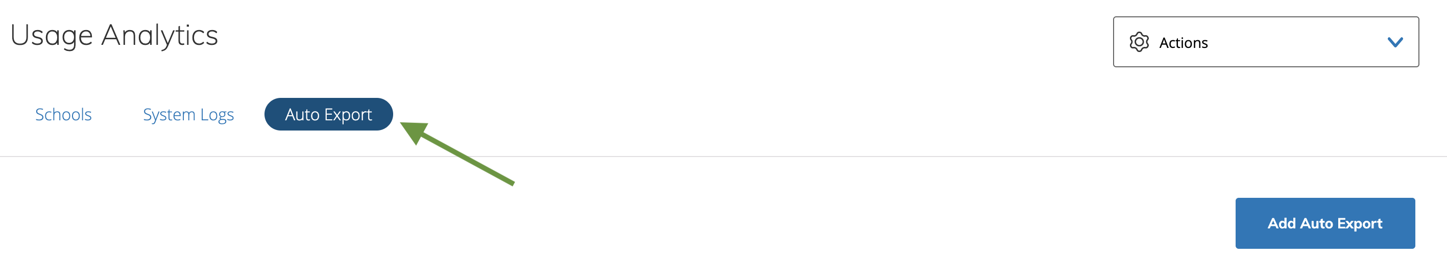 El análisis estadístico de uso muestra las estadísticas del centro educativo y los registros de los usuarios de la organización. A partir del 1 de agosto de 2019, el análisis estadístico de uso (antes conocido como análisis estadístico del centro educativo) utiliza un sistema nuevo que permite comprender mejor la adopción general de Schoology a nivel del distrito y facilita la exportación de datos en escala.
