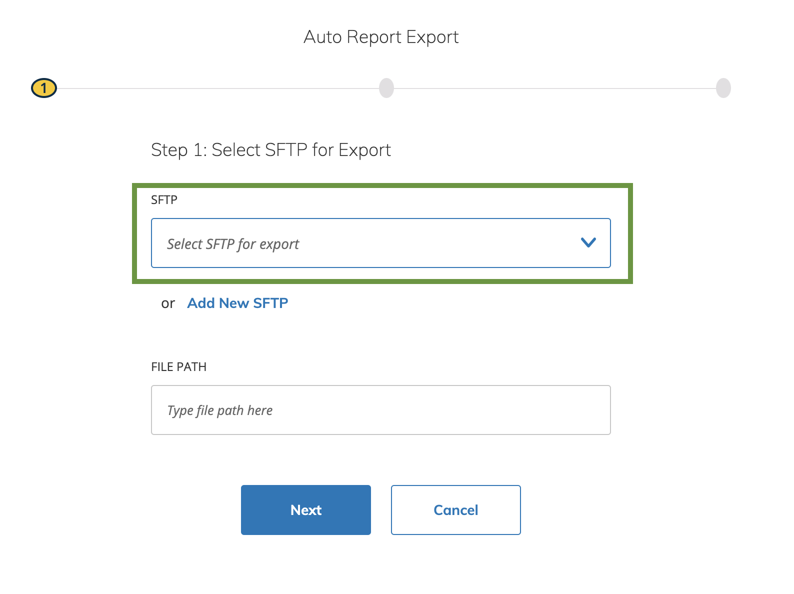 Paso 1: seleccione el SFTP para la exportación