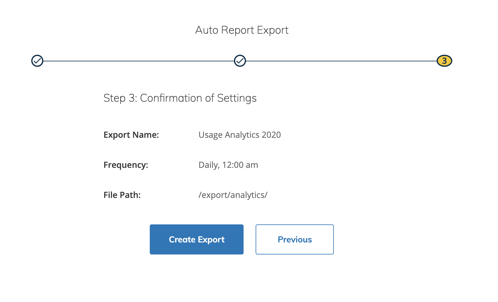 Siga estos pasos para continuar con la configuración de la exportación automática.