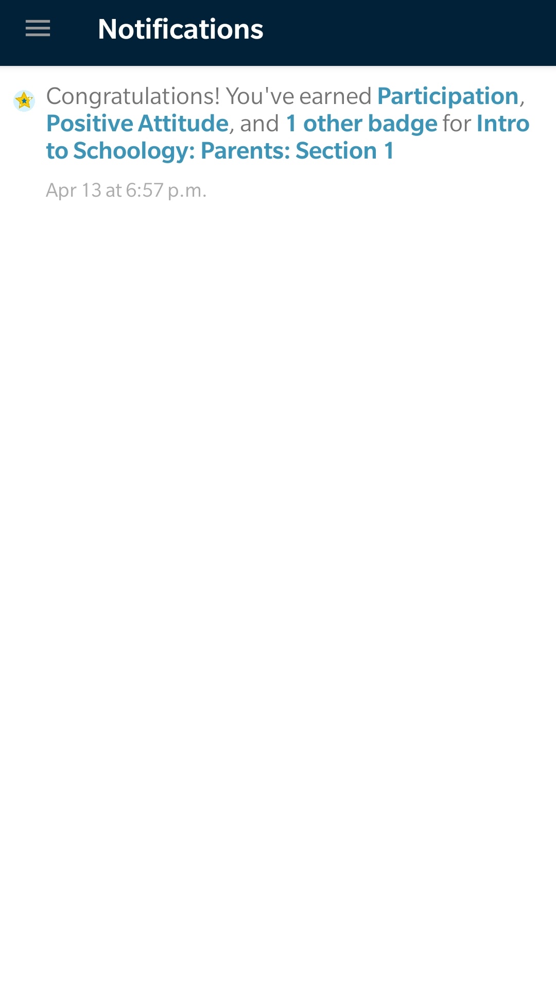Schoology le envía notificaciones electrónicas y por mensaje de texto sobre la actividad social, académica, grupal y escolar que se produce en su cuenta. Si desea obtener más información sobre las notificaciones en la aplicación para Android de Schoology, consulteNotificaciones electrónicas y por mensaje de texto.