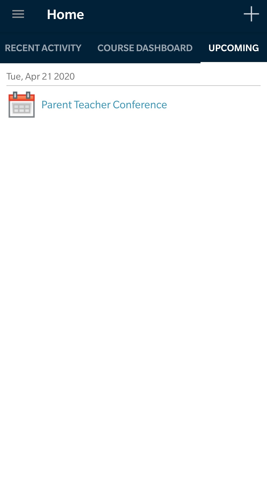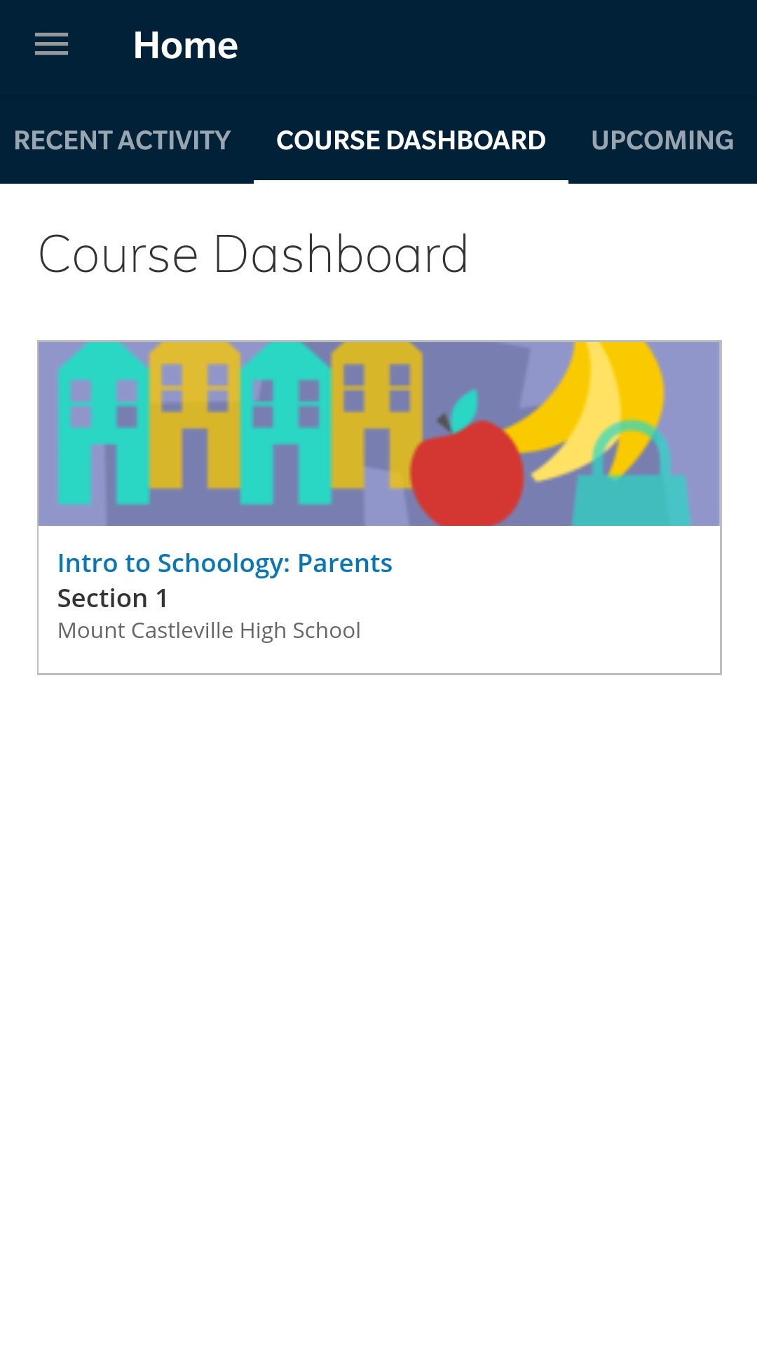 El áreaIniciole permite acceder rápidamente a las áreasActividad reciente,Panel del cursoyActividades próximasen Schoology. Al abrir la aplicación para Android de Schoology, y según la configuraciónde la cuenta, podrá ver el áreaActividad recienteo elPanel del curso.