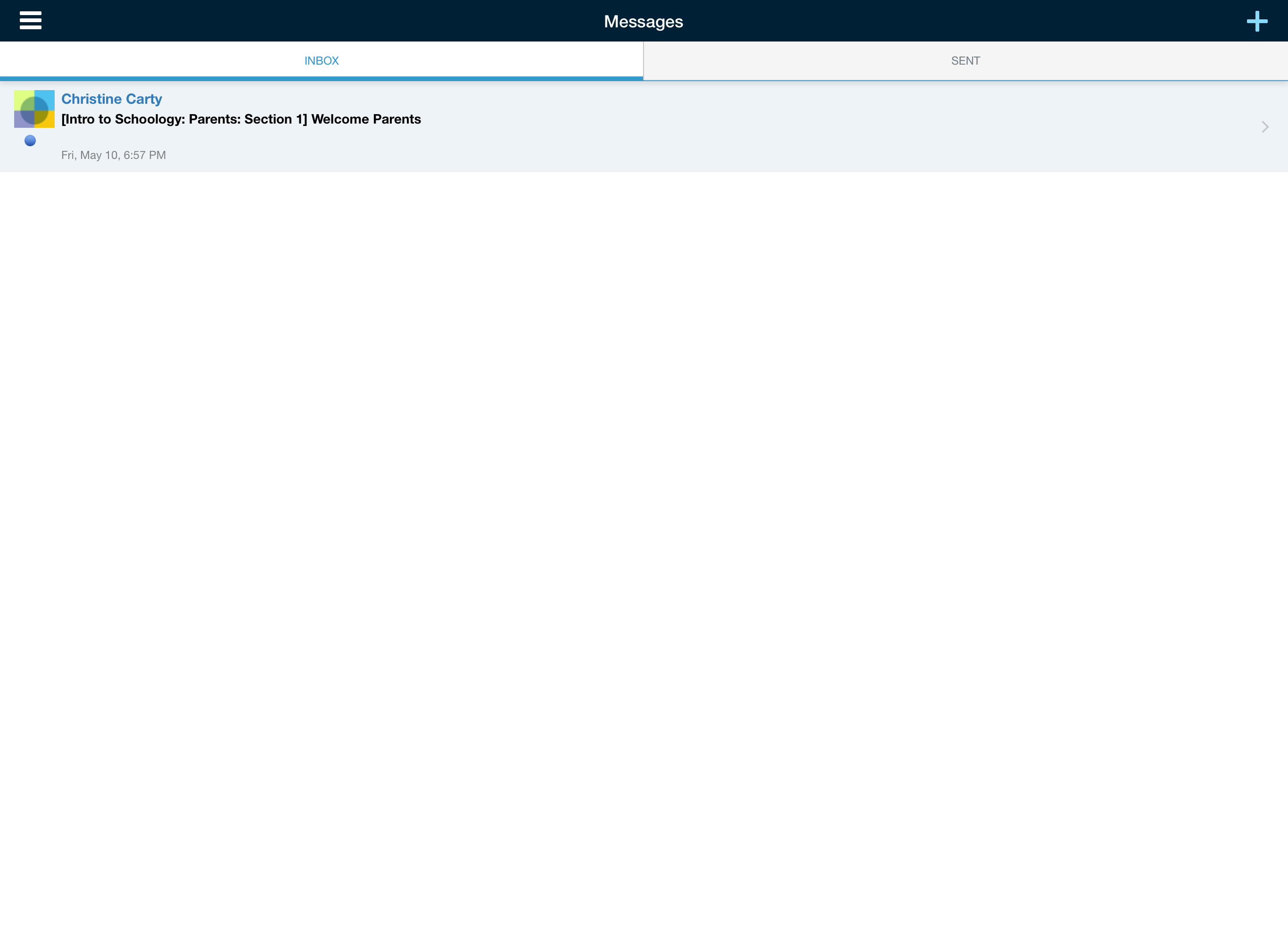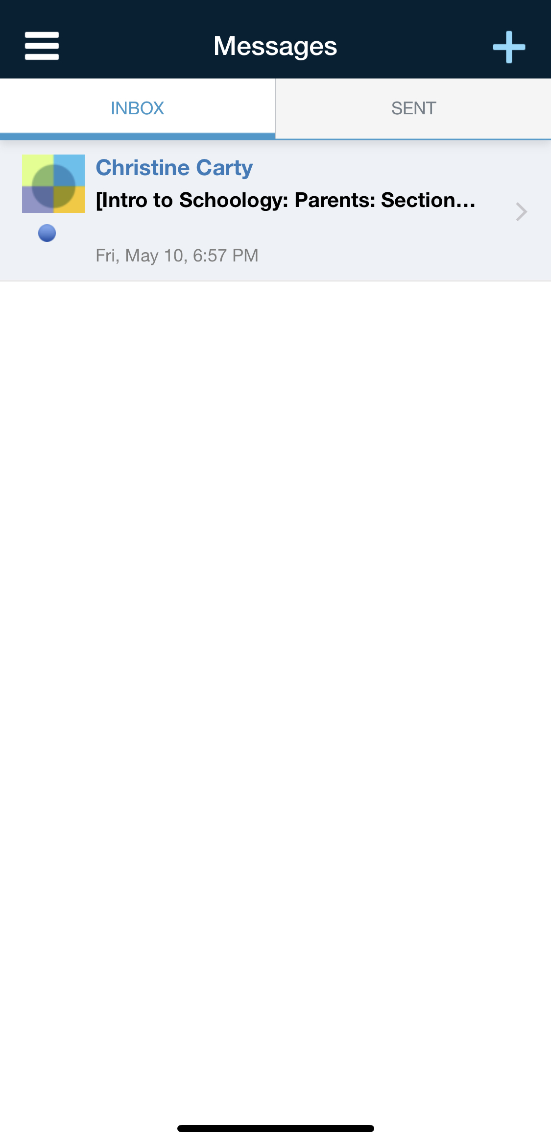 El buzón muestra los mensajes recibidos de forma predeterminada. Si ve un punto azul, significa que posee un mensaje sin abrir. Para ver el mensaje, simplemente pulse el mensaje que desea abrir.