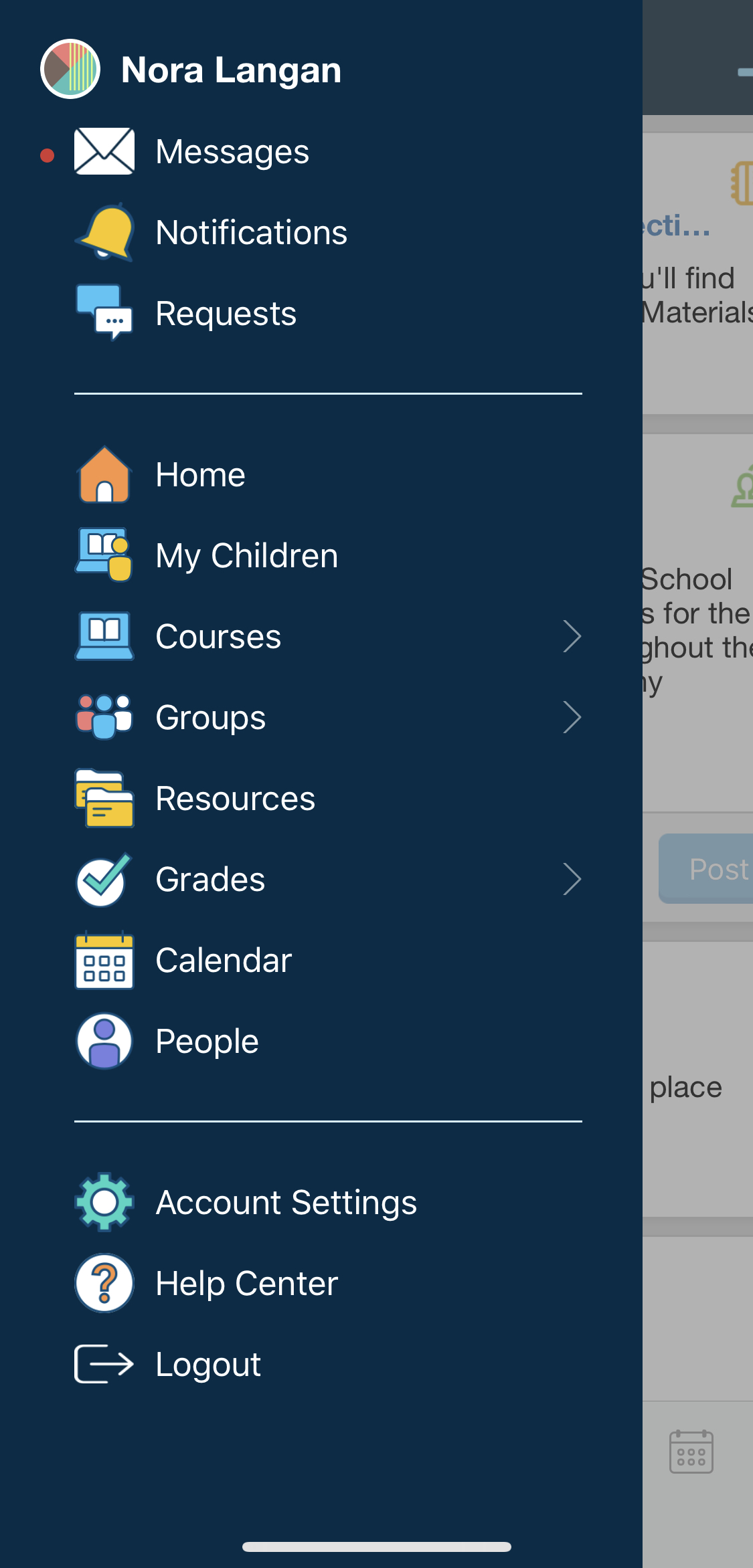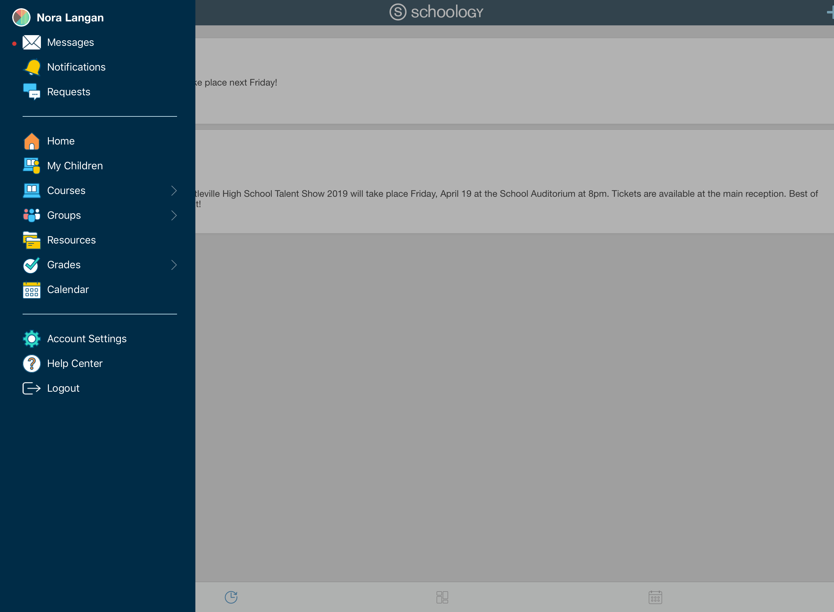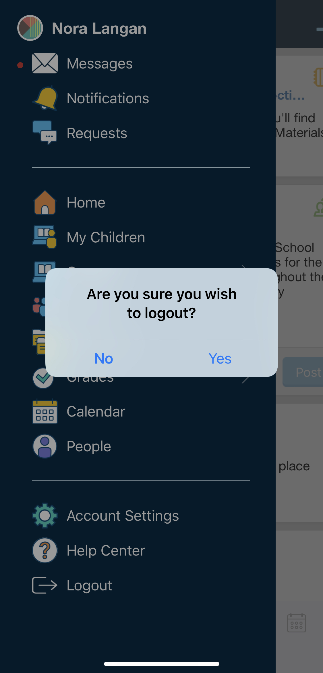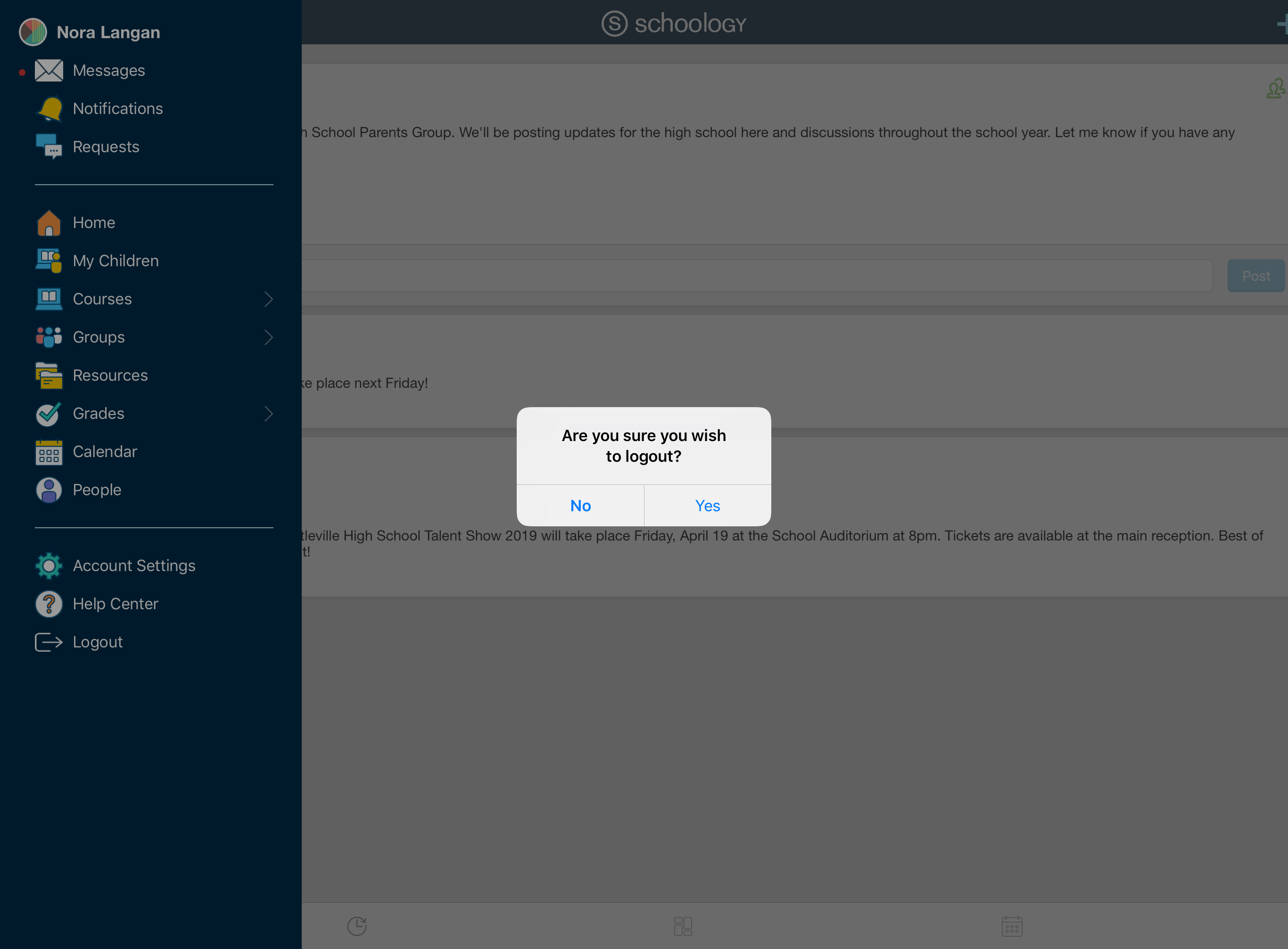 Cierre de sesión: cierre la sesión en la aplicación iOS de Schoology.