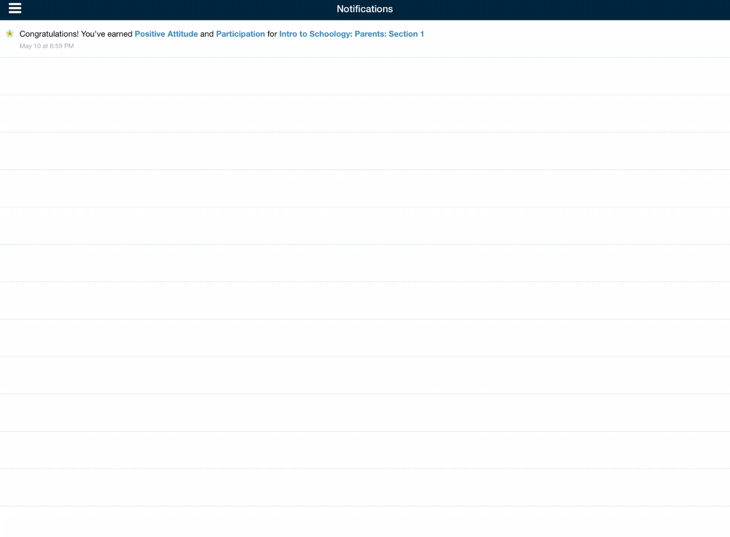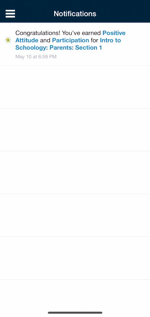 Schoology le envía notificaciones electrónicas sobre las actividades sociales, académicas, del grupo y del centro educativo que se producen en su cuenta. Si desea obtener más información sobre las notificaciones en la aplicación iOS de Schoology, consulte Notificaciones.
