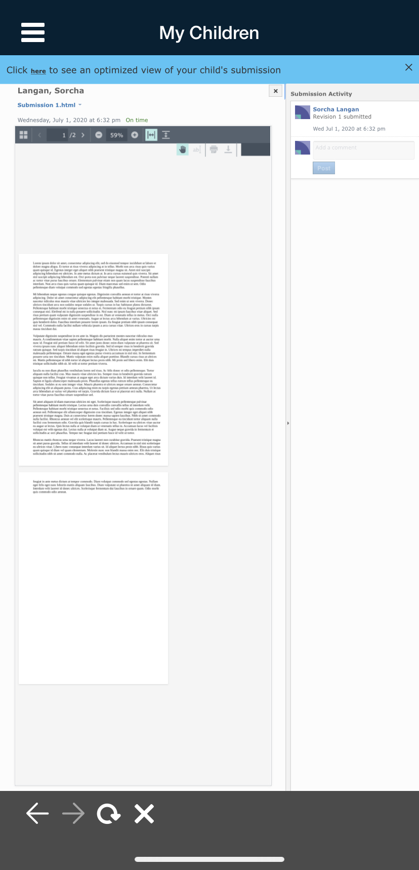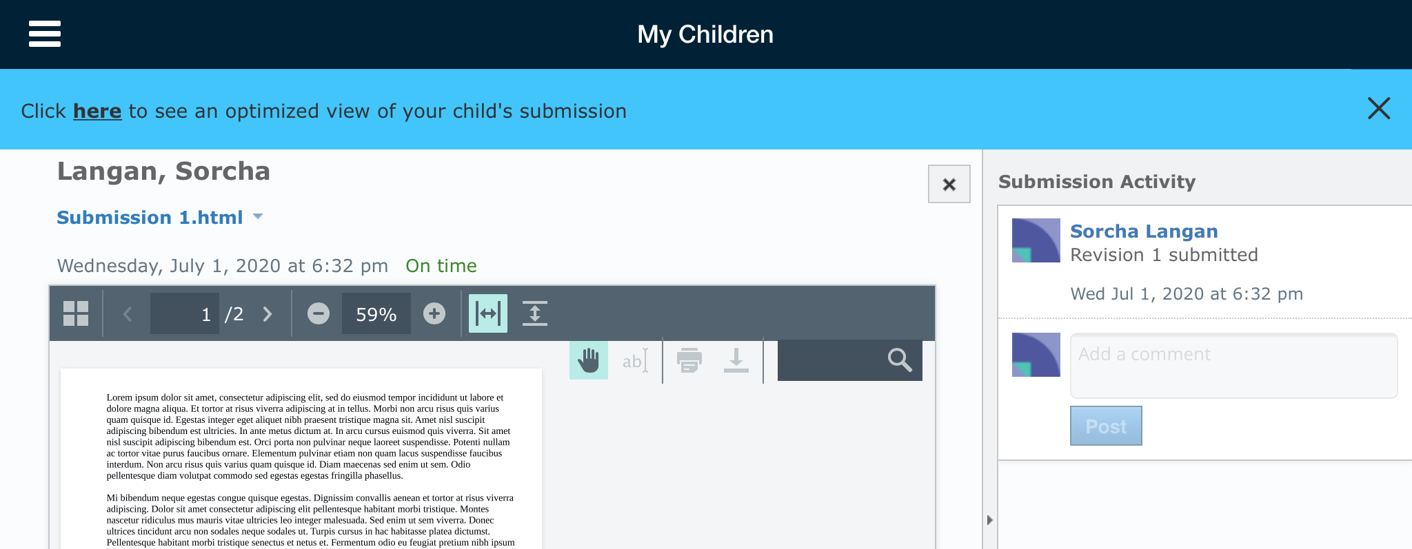 Nota: La página de inicio de los padres muestra los cursos y la actividad reciente de los padres. Para ver los cursos y la actividad reciente de su hijo, vaya a Mis hijos.