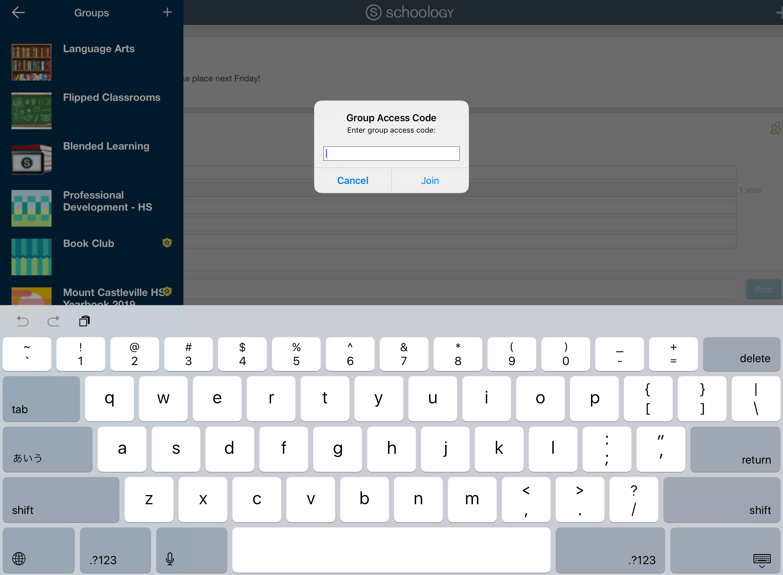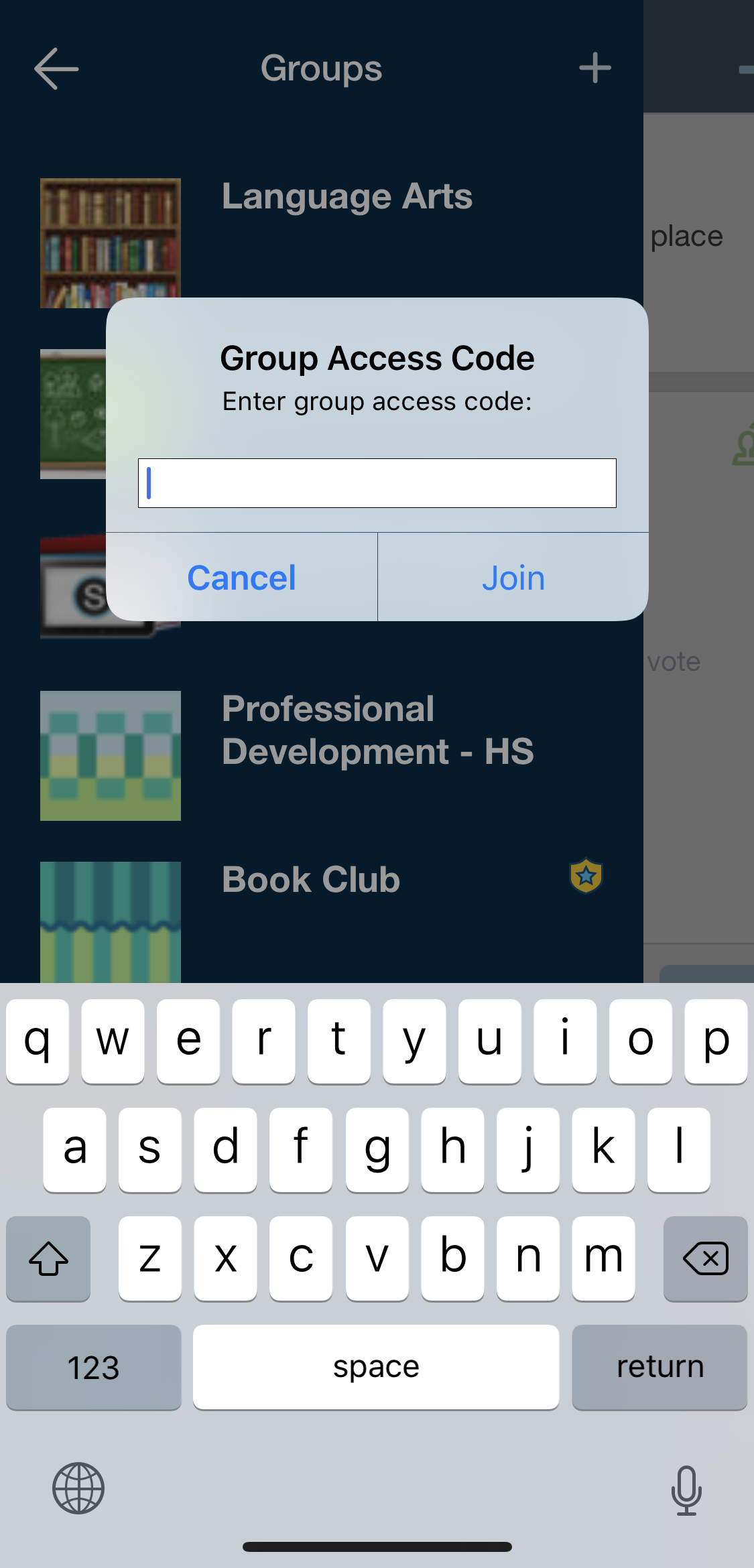 Nota: Según la configuración establecida en su centro educativo, es posible que no tenga permiso para unirse a grupos mediante los códigos de acceso de grupo.