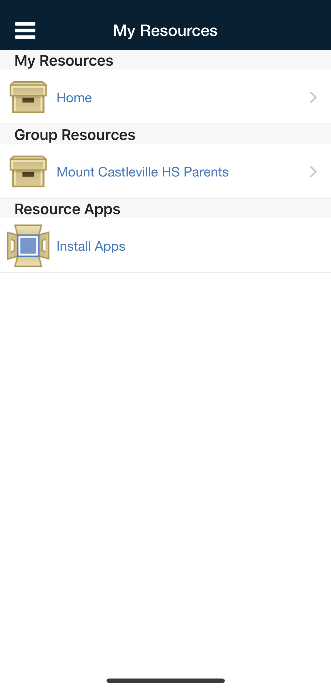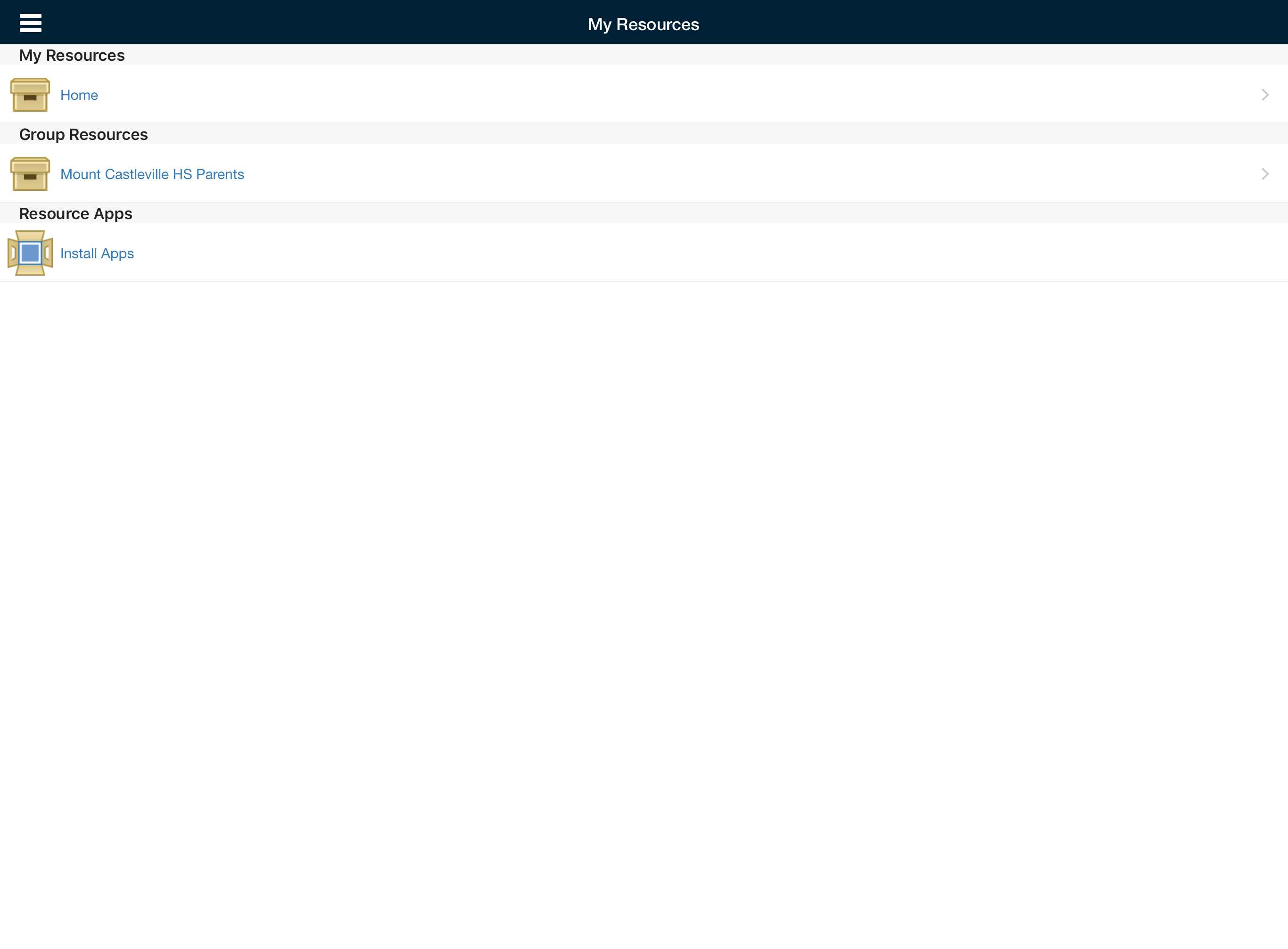 Según su dispositivo, puede acceder al área Recursos al pulsar Más en la barra de pestañas inferior del perfil del grupo y, luego, pulsar Recursos, o bien puede pulsar Recursos directamente en el menú de la izquierda. En Recursos del grupo, se muestran los materiales y los recursos asociados con el grupo.