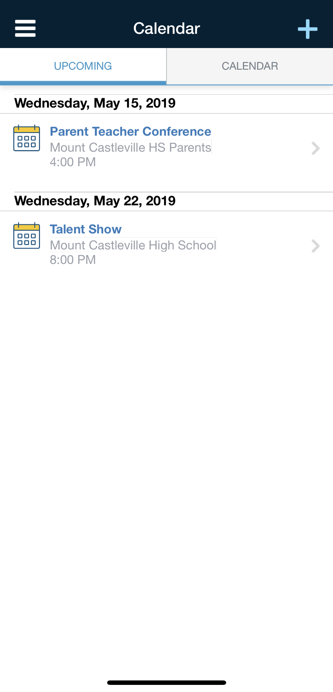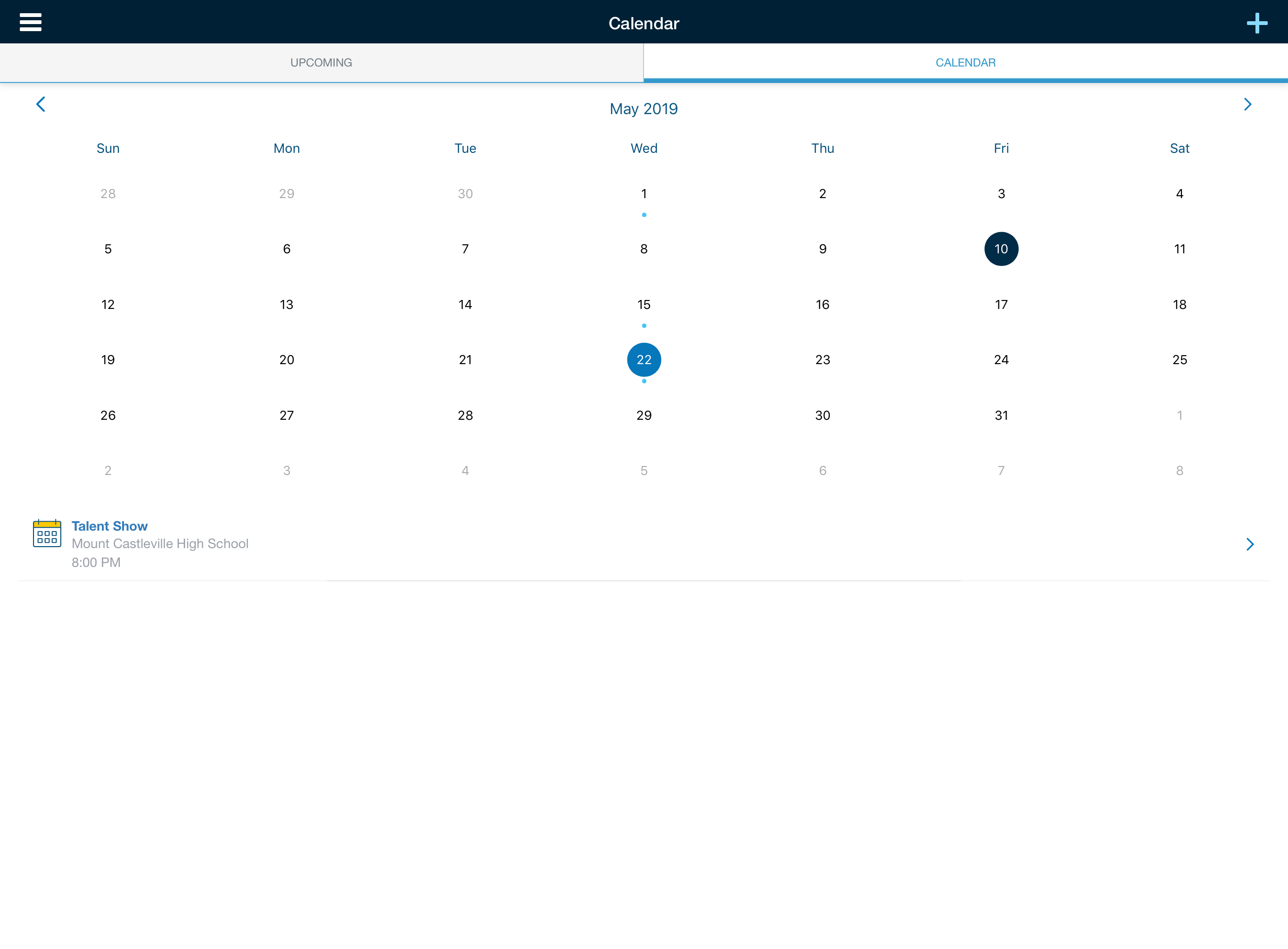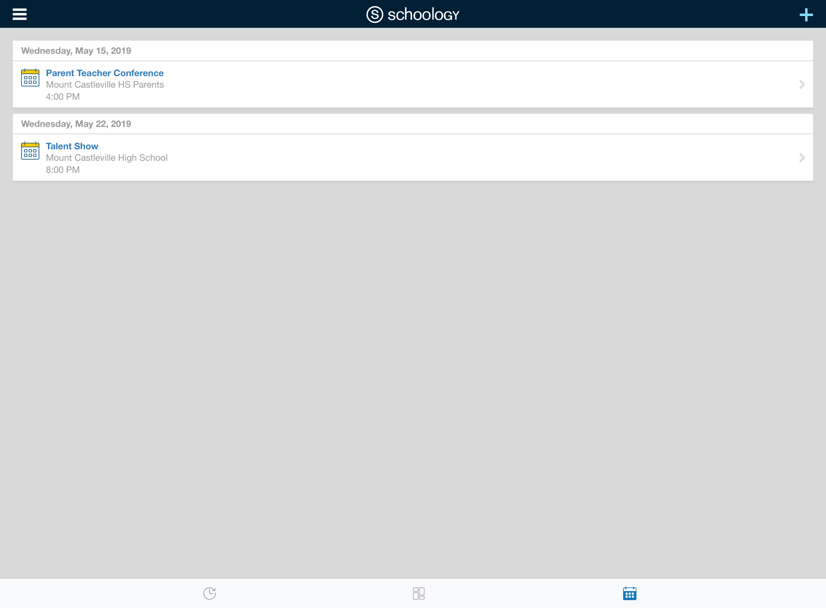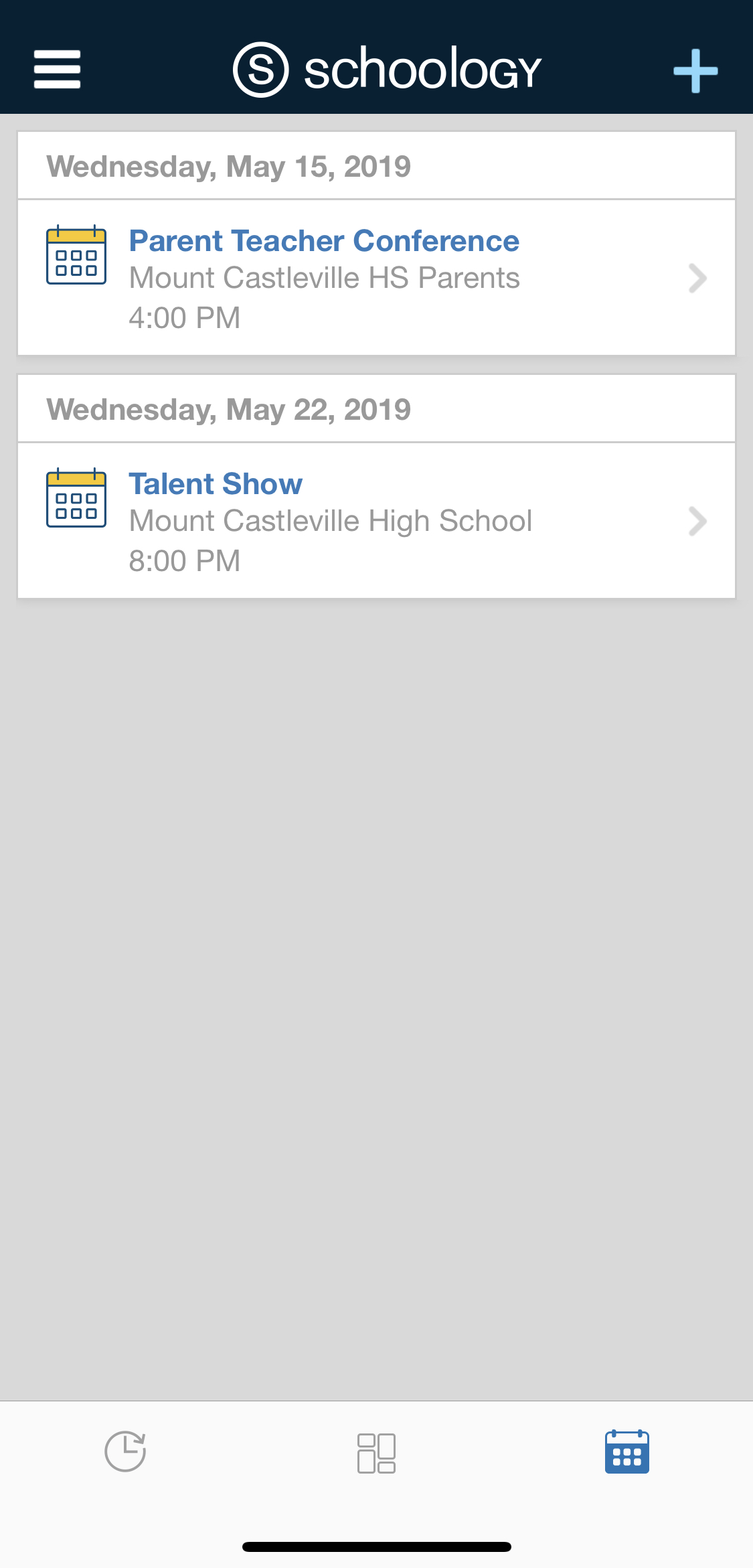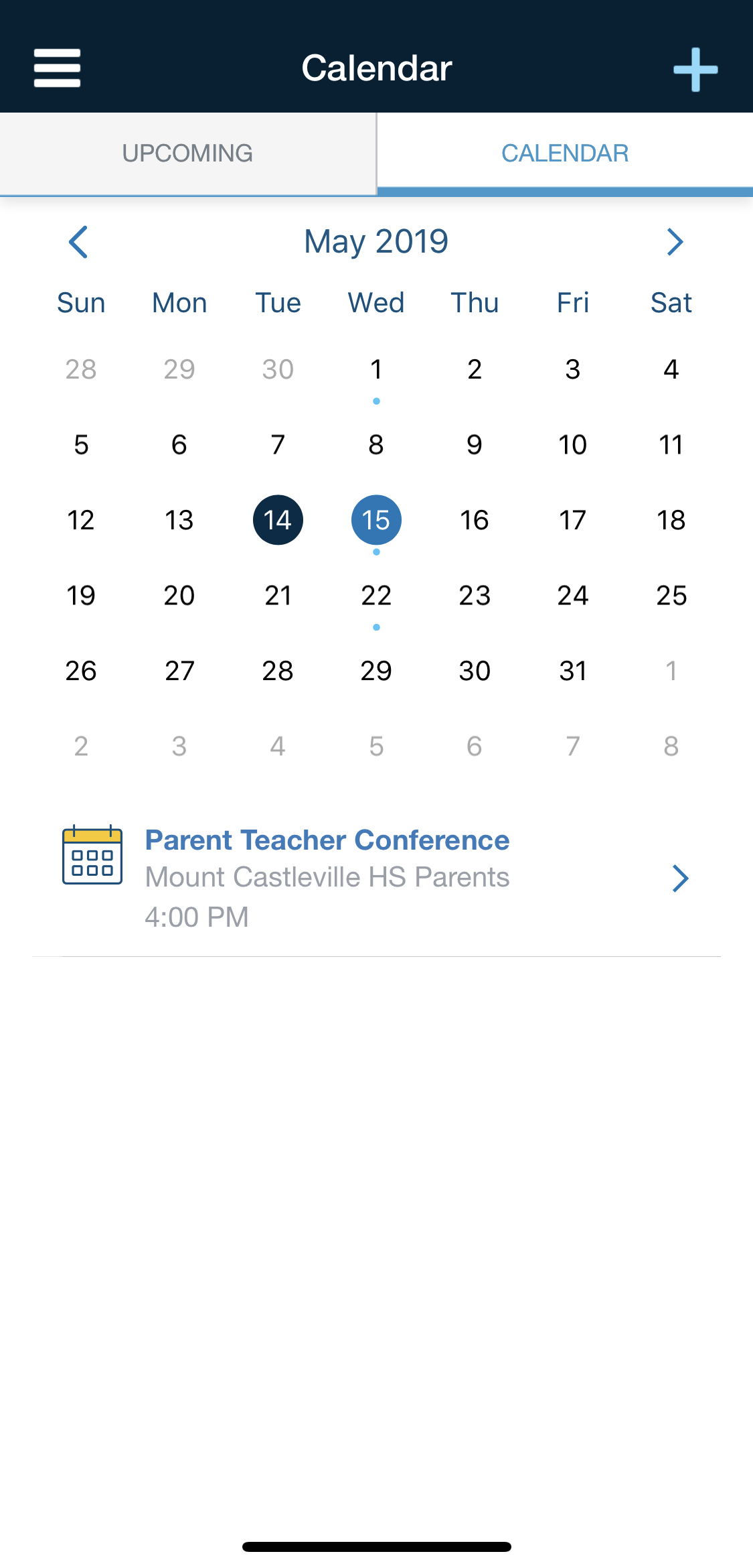 Nota: Este es el calendario de su cuenta de padres personal. Para ver el calendario de su hijo, diríjase a Mis hijos.