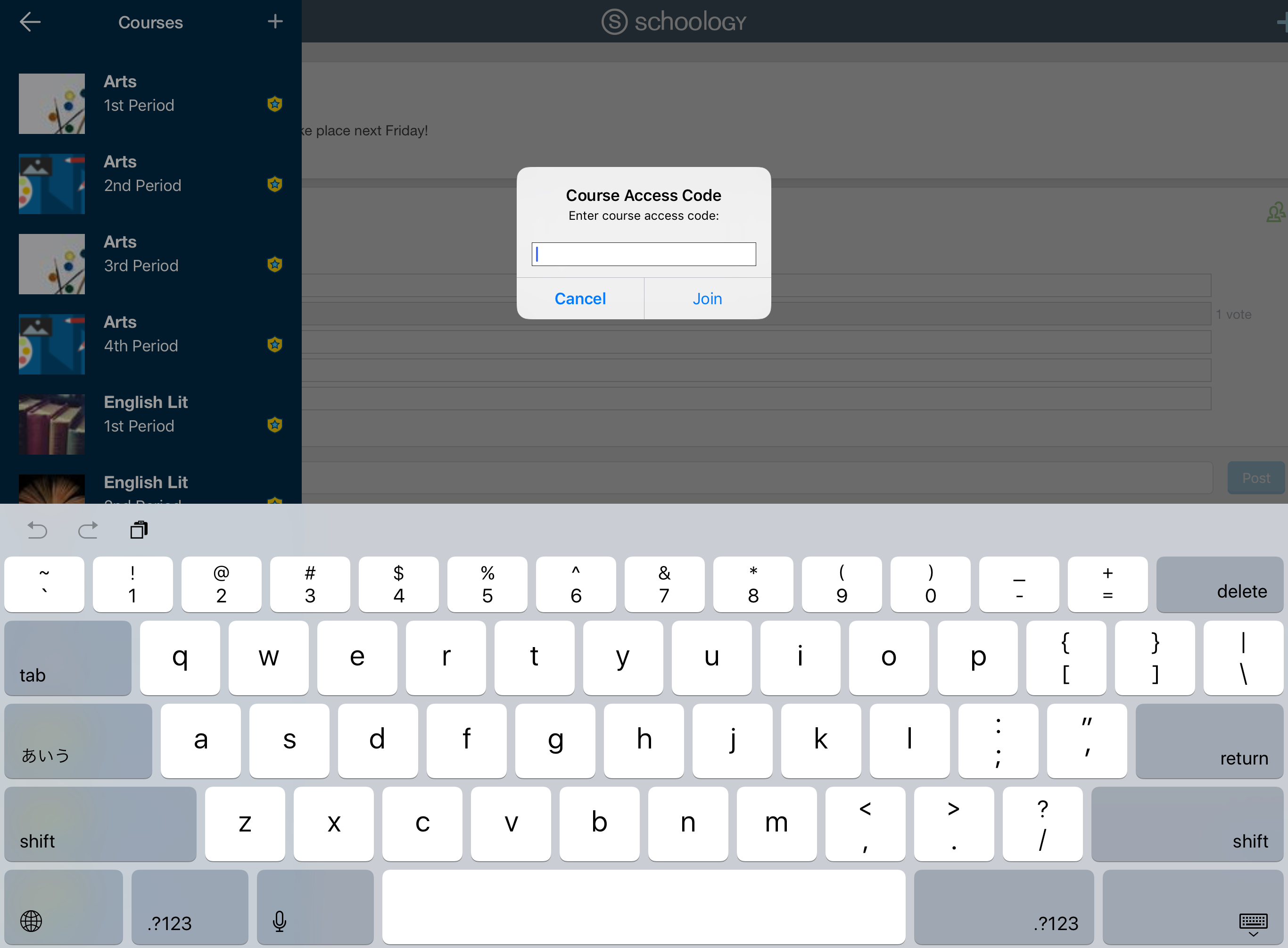 Imagen superior: la vista Unirse a un curso en un iPhone X. Imagen inferior: la vista Unirse a un curso en un iPad Pro (vista en modo horizontal).