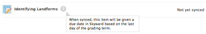 “Durante la sincronización, este elemento en Skyward recibirá una fecha límite conforme al último día del período de evaluación”