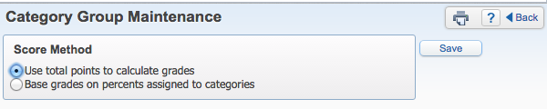 Elija Utilizar puntos totales para calcular calificaciones o Basar calificaciones en porcentajes asignados a las categorías.