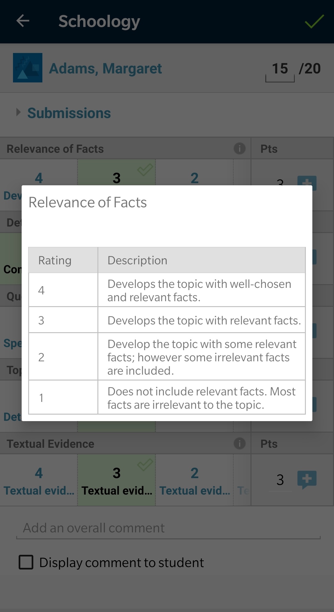 Los instructores pueden calificar las tareas directamente desde la aplicación para Android de Schoology.