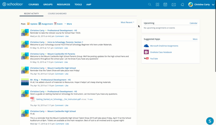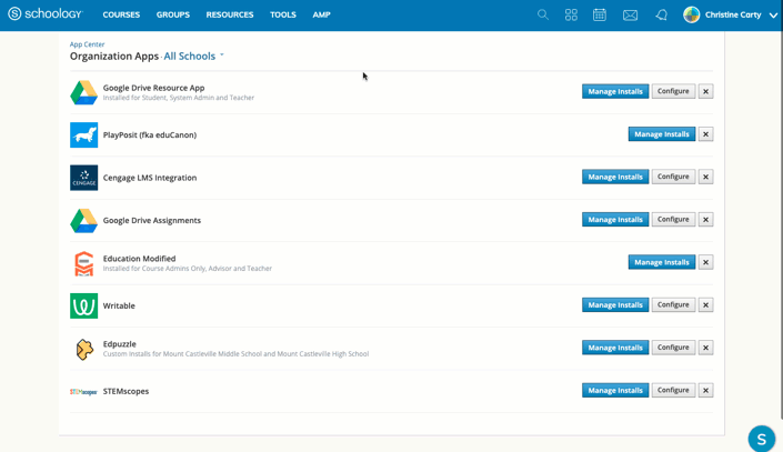 Haga clic en Aplicaciones de la organización debajo del encabezado en la parte superior de Schoology.