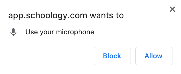Dependiendo de la configuración de su navegador, quizás se le pida que habilite el micrófono. Haga clic en Permitir para continuar con la grabación: