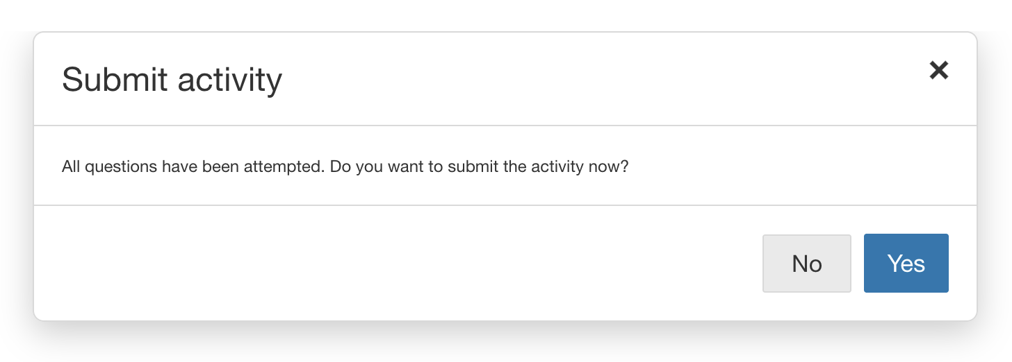Paso 3: Haga clic en Sí para entregar su intento de evaluación. Haga clic en No si necesita seguir revisando el intento.