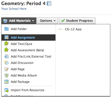 En el menú Cursos en la parte superior de la pantalla, seleccione el curso en el que agregará la tarea.