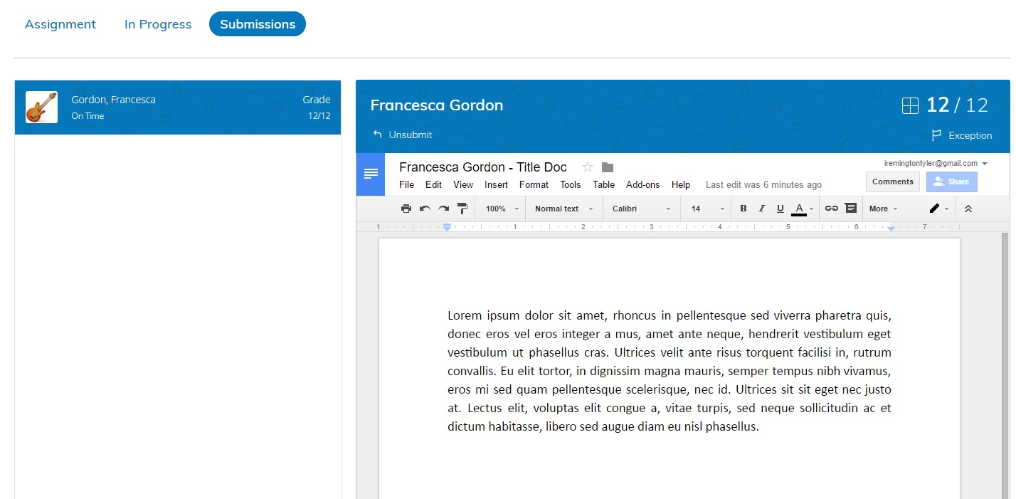 Supervise el progreso de los alumnos antes de que realicen la entrega. Utilice la herramienta original de comentarios de Google Drive para ingresar comentarios directamente en las entregas.