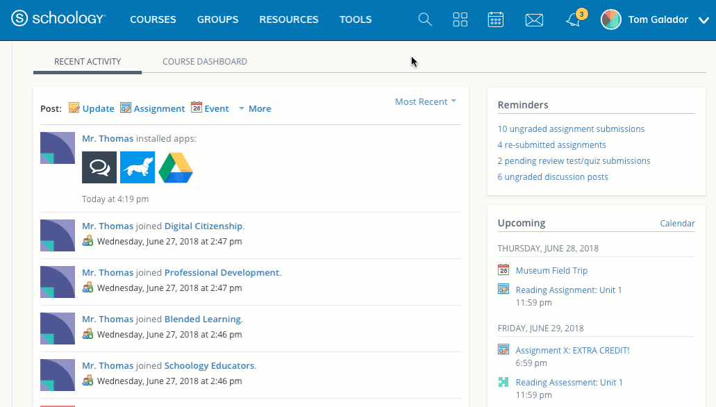 - Haga clic en el icono del Centro de aplicaciones en la parte superior de Schoology; luego, haga clic en Centro de aplicaciones.