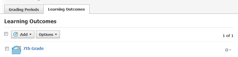 Puede organizar o importar los objetivos de aprendizaje desde el botón Opciones.