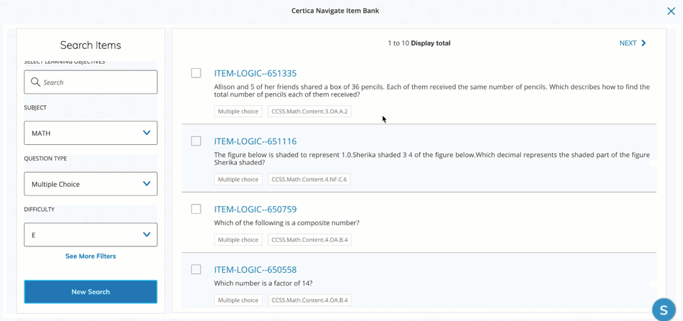 Paso 2: Realice una búsqueda en Navigate Item Bank