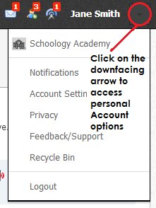 Usted puede acceder a la página de su cuenta personal utilizando el menú Cuenta designado por la flecha hacia abajo en la esquina superior derecha de la página.