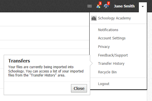 Nota: Una vez finalizada la importación, podrá hacer clic en el curso importado desde el área Historial de transferencias. Al hacer clic en el curso, accederá a la nueva colección en sus recursos personales.
