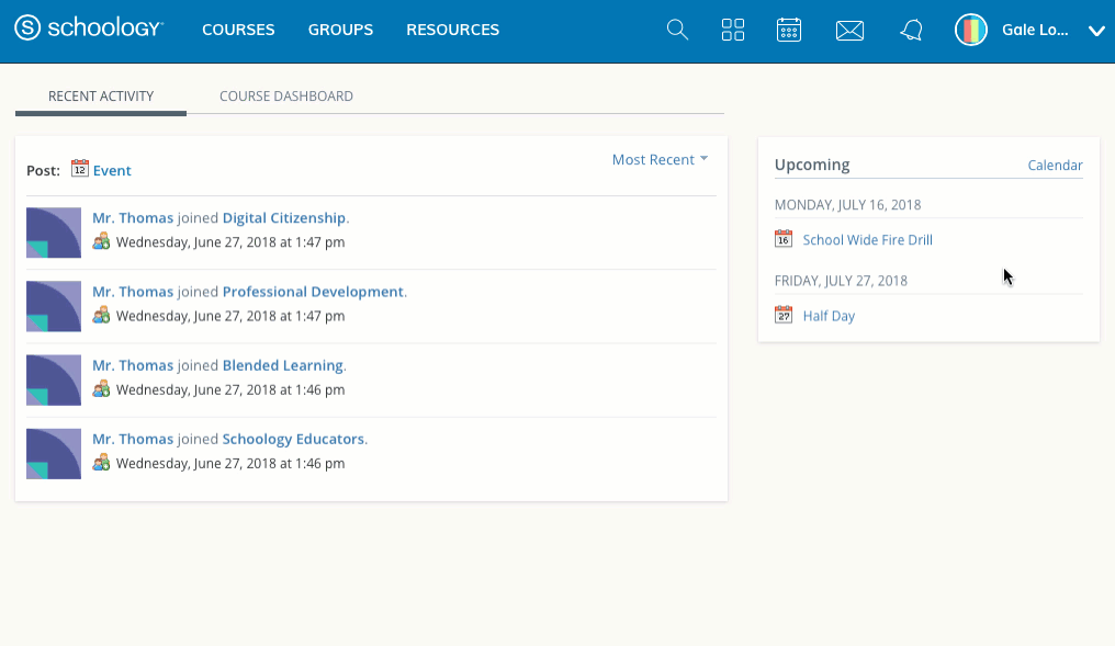 Schoology le envía notificaciones electrónicas sobre la actividad social, académica, grupal y escolar que se produzca en su cuenta. Estas notificaciones se relacionan con el centro educativo, los cursos y los grupos en los que usted está inscrito (no con los cursos y grupos en los que está inscrito su hijo).