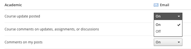 Puede seleccionar qué notificaciones desea recibir de los cursos y grupos en los que está inscrito.