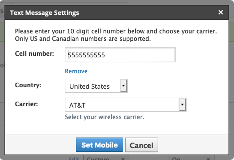 Nota: Si vive fuera de los EE. UU. o Canadá, por el momento no se admiten las notificaciones por mensaje de texto.