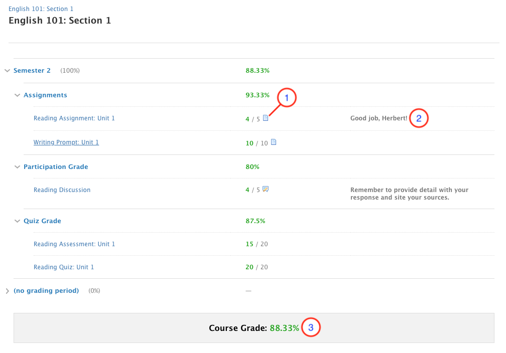 Nota: Según la configuración del centro educativo, es posible que no pueda acceder a esta área y a parte de su contenido. Comuníquese con el instructor si tiene dudas sobre las calificaciones que aparecen para los alumnos en esta área.