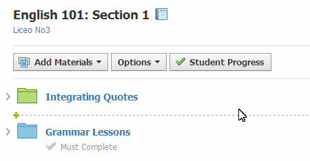 Si se desplaza por los contenidos del curso, aparecerá un signo + de color verde. Haga clic en la línea para agregar contenido a la carpeta.
