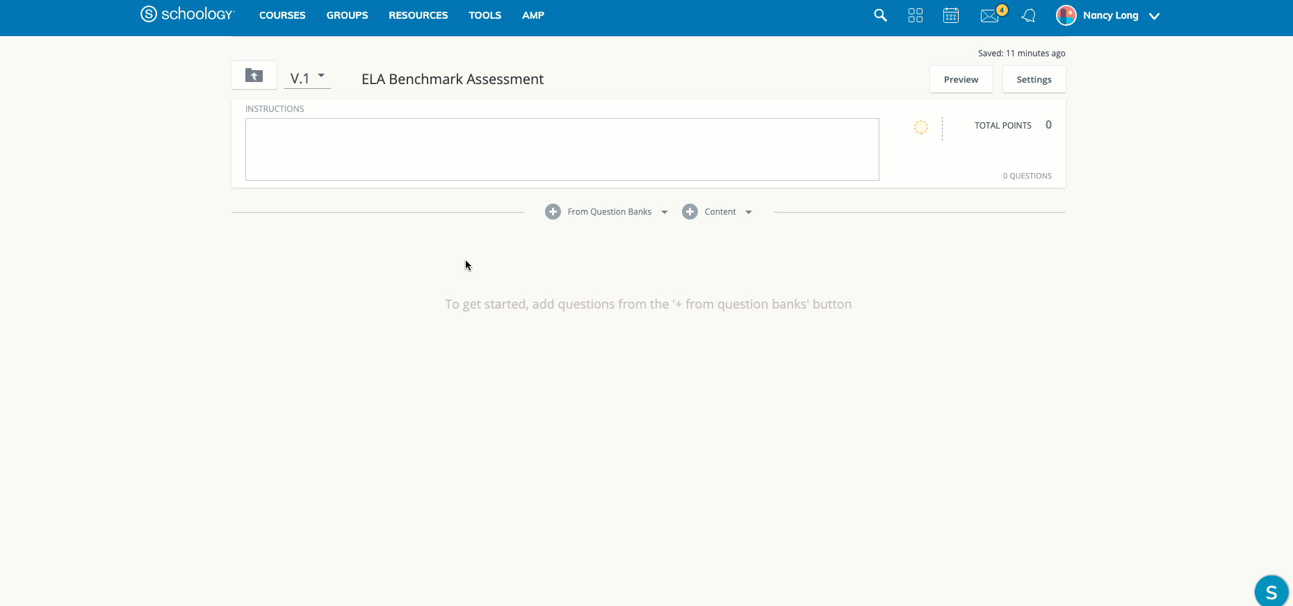 Nota: El metatag de los estándares estatales esenciales comunes no se incluye en los elementos iniciales. Comuníquese con su representante de Schoology si necesita incluir este metatag en sus evaluaciones.