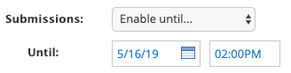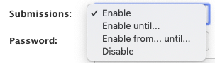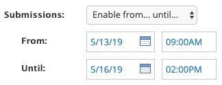 Habilitar desde... hasta: los alumnos pueden iniciar la prueba a partir de la fecha y hora indicadas en el campo Desde y antes de la fecha y hora indicadas en el campo Hasta.