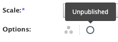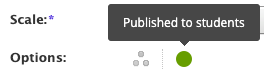 En Opciones, haga clic en el círculo para publicar la evaluación y permitir que los alumnos puedan visualizarla en la página Materiales del curso. El círculo gris indica que la evaluación no se encuentra publicada, y el círculo verde indica que la evaluación se encuentra publicada: